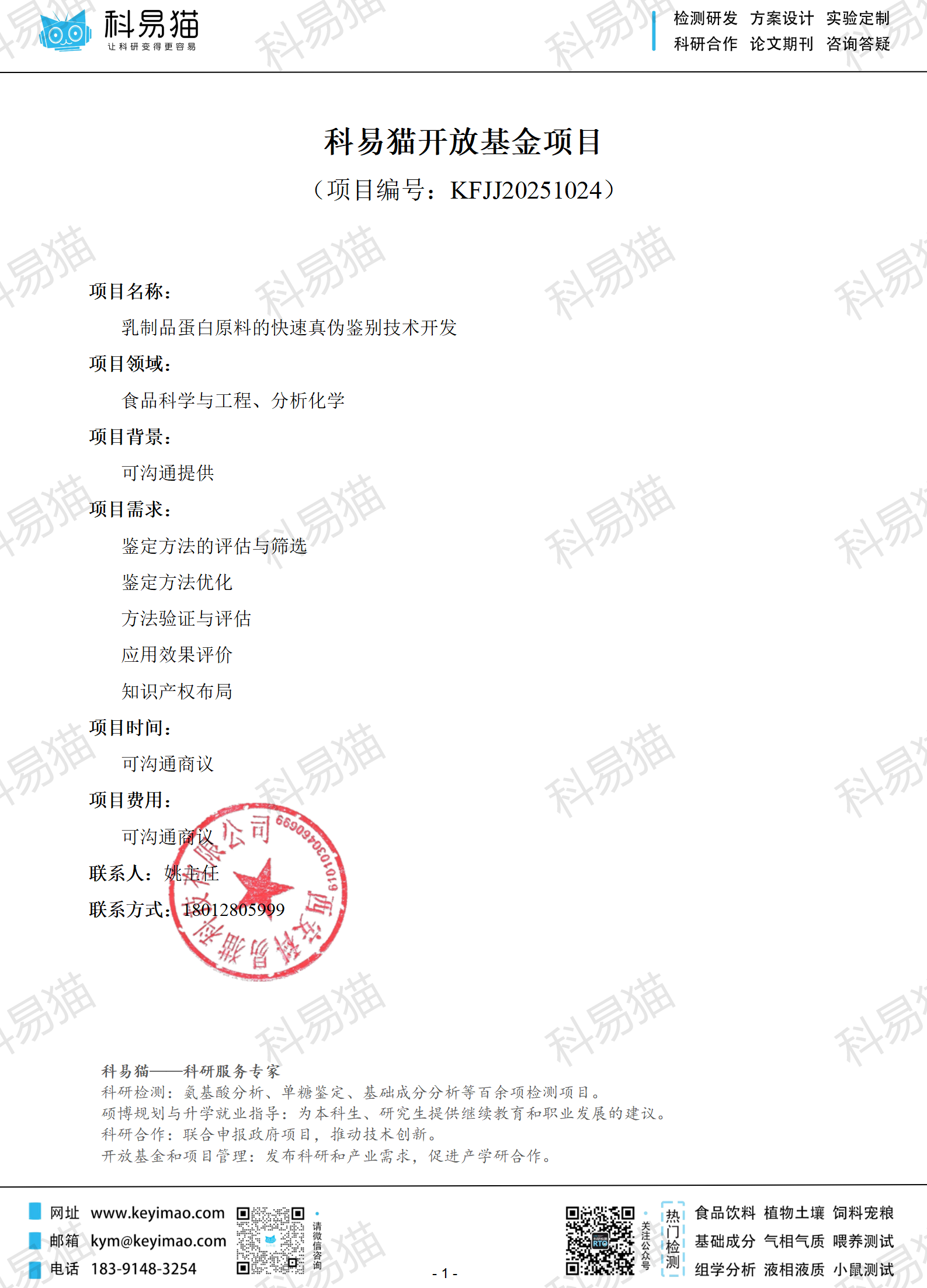 乳制品蛋白原料的快速真伪鉴别技术开发