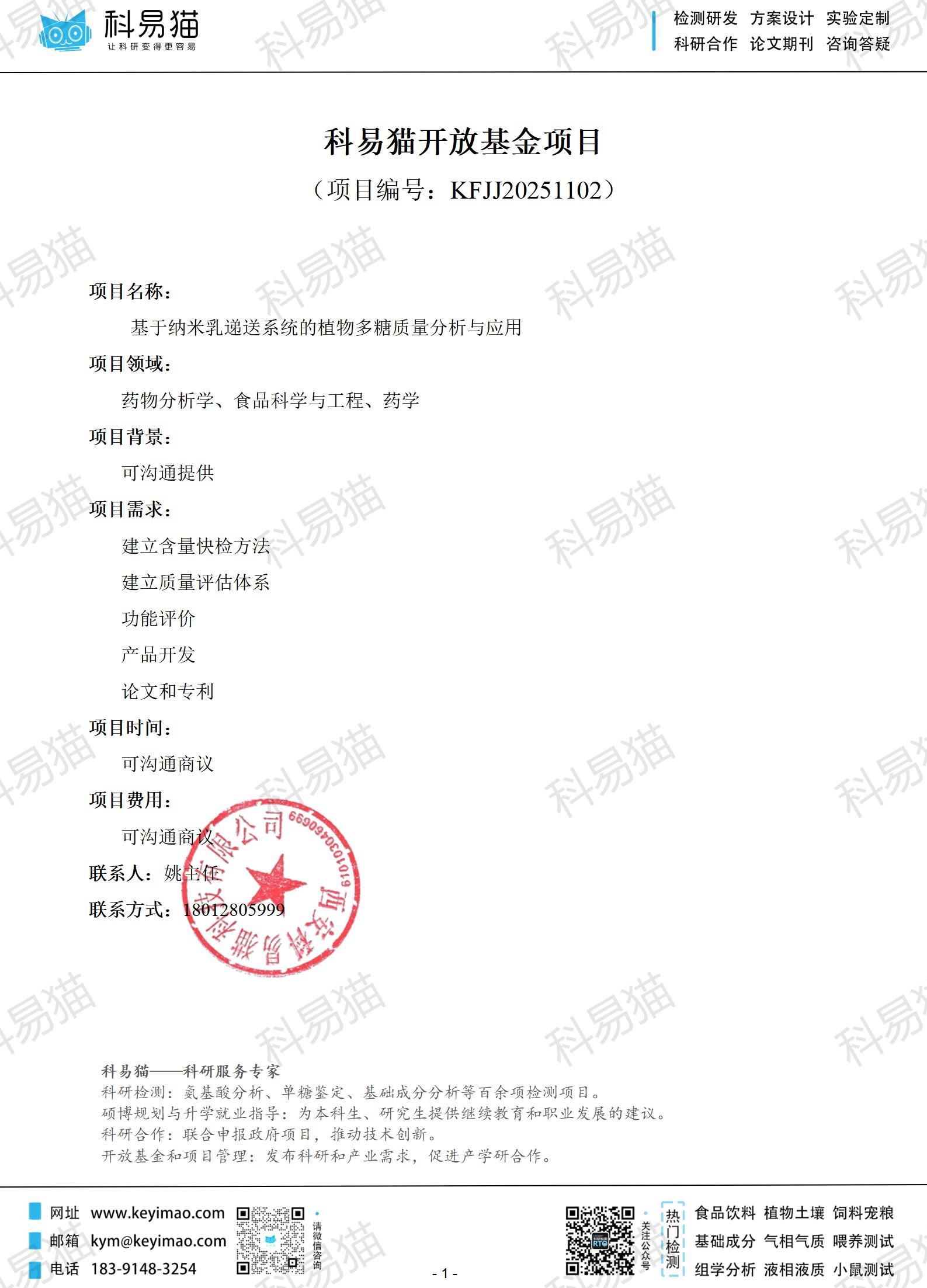 基于纳米乳递送系统的植物多糖质量分析与应用