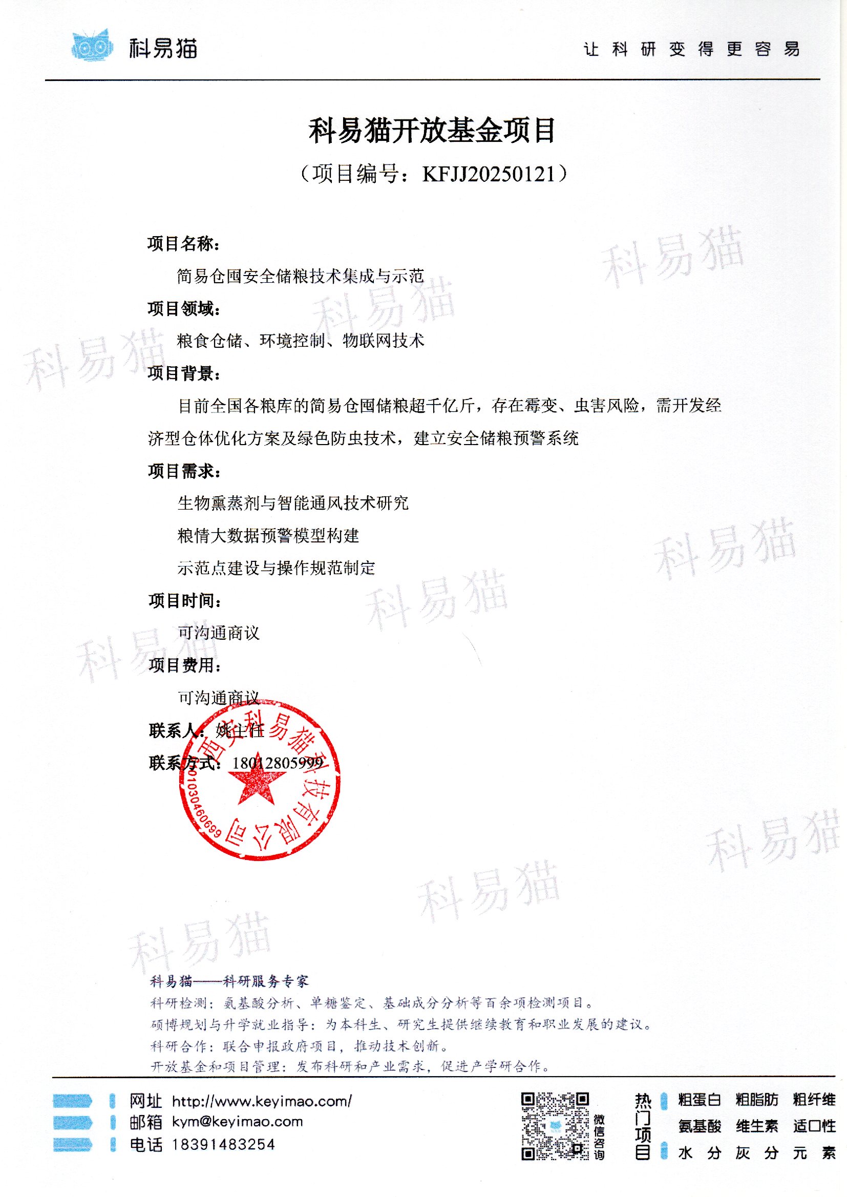 科易猫关于“简易仓囤安全储粮技术集成与示范”开放基金项目KFJJ20250121
