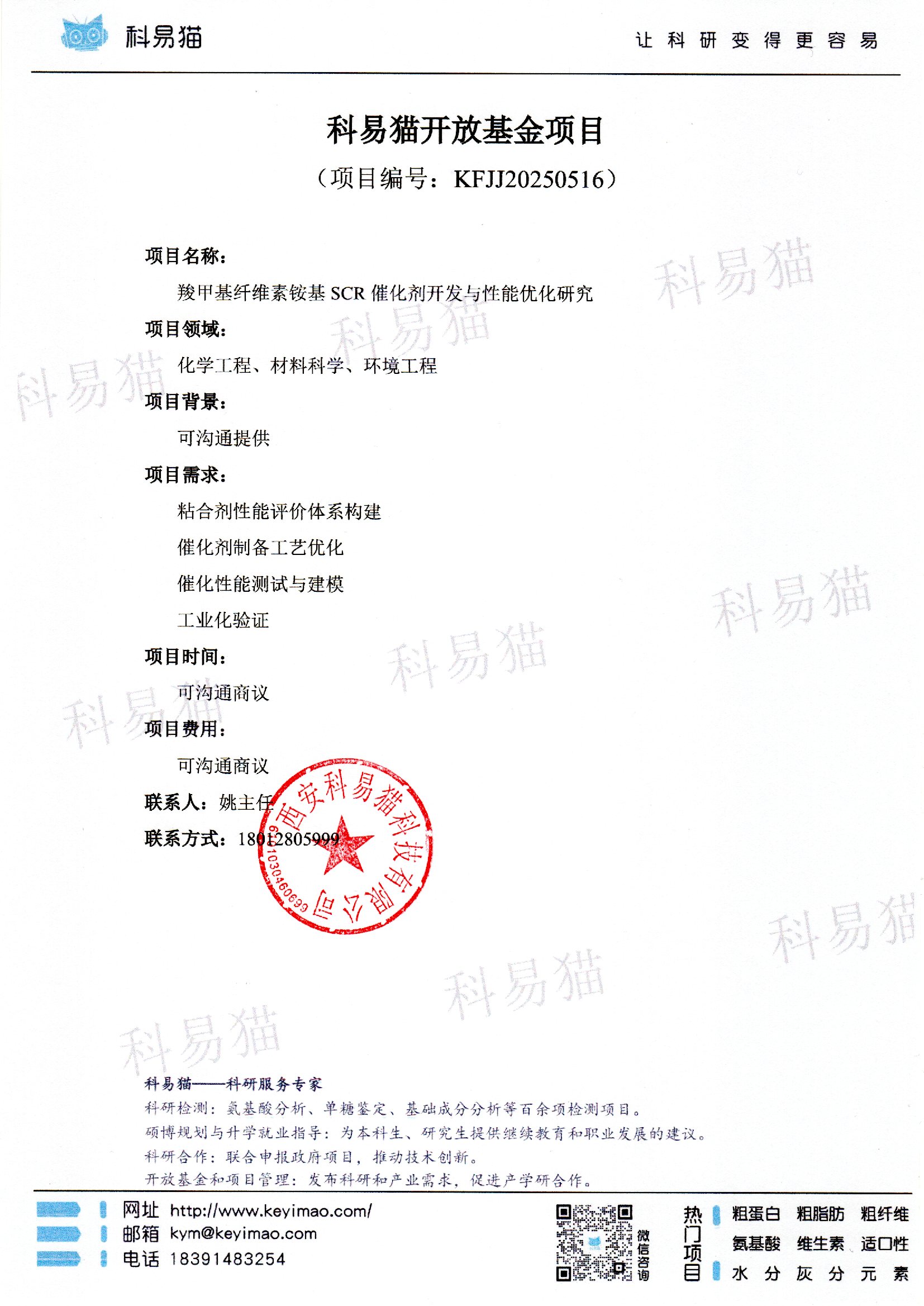 羧甲基纤维素铵基 SCR 催化剂开发与性能优化研究