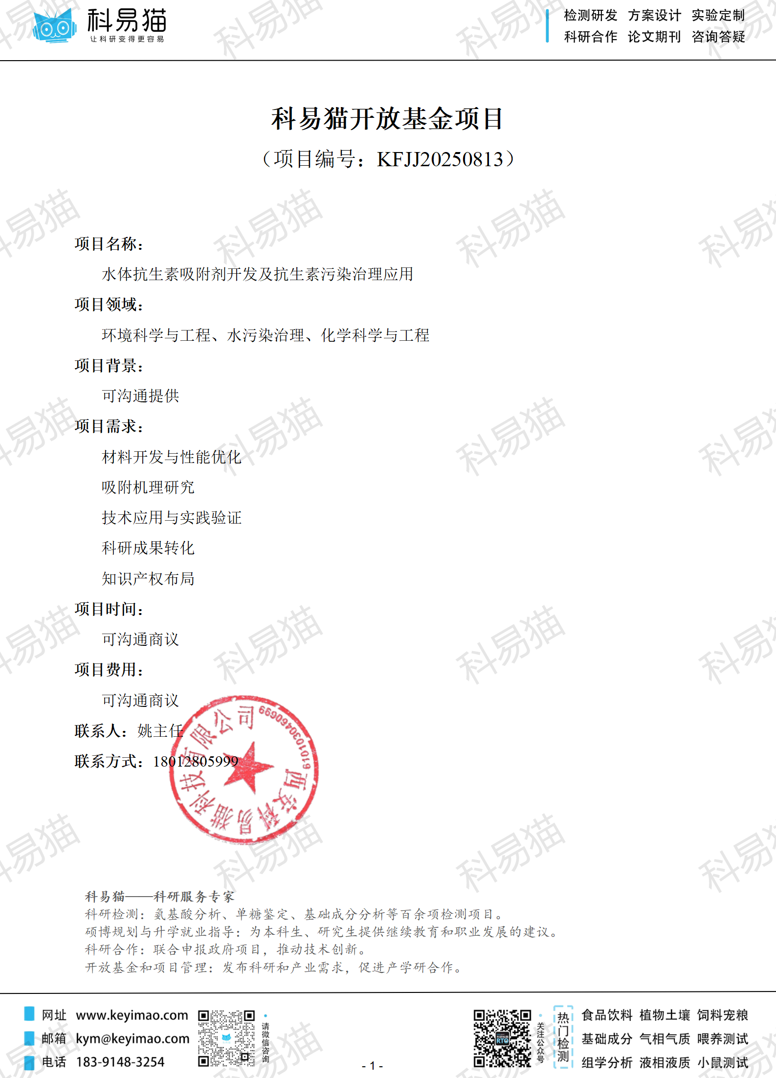 水体抗生素吸附剂开发及抗生素污染治理应用